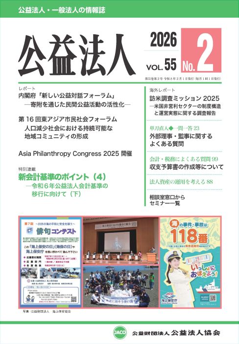 本号では、昨年末に開催された内閣府「新しい公益対話フォーラム」の概要、当協会「訪米調査ミッション2025 調査報告」と、初の地方開催となった「第16 回東アジア市民社会フォーラム」、さらに「Asia PhilanthropyCongress 2025」の概況を報告します。